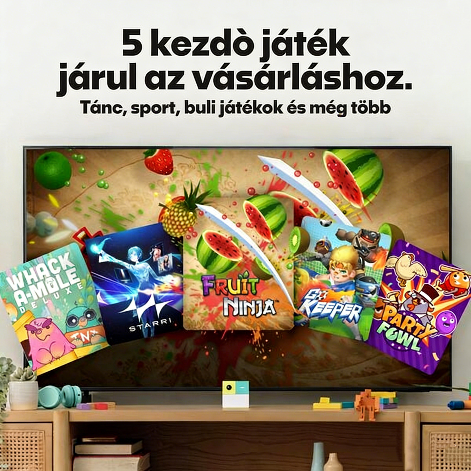 A Nex Playground egy olyan új típusú videojáték-konzol, amely felváltja a hagyományos ülő játékokat aktív, mozgásos szórakozással, tökéletes választás családok és gyerekek számára. Összekapcsolva a televíziódhoz vagy projektorodhoz az nappalidat rövid idő alatt egy izgalmas játékterrévé alakítja, ahol nem csak a kezdeti öt beépített játék – a Fruit Ninja, Starri, Whac-a-Mole, Go Keeper és Party Fowl –, hanem a Play Passz előfizetéssel még sokkal több népszerű cím is elérhető, köztük a Barbie, Mutáns Ninja Teknőcök, Hogyan nevelj egy sárkányt, Peppa Malac és még sok más kedvelt sorozat alapján készült játék.